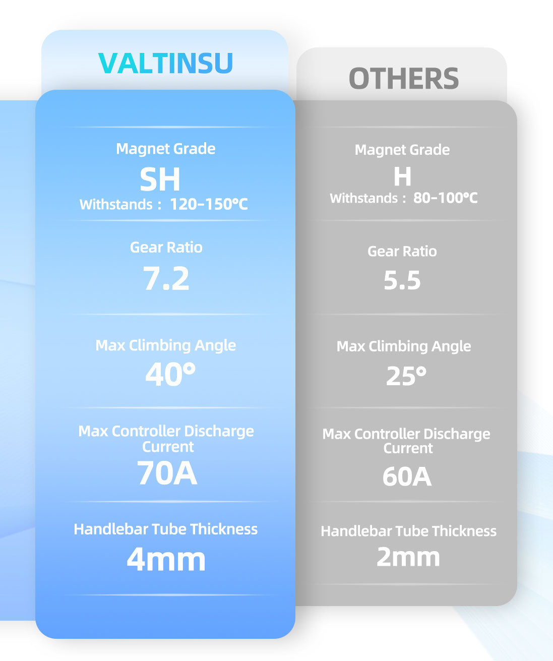 – 60V version: Maximum speed of 45 Mph, peak motor power of 4000W